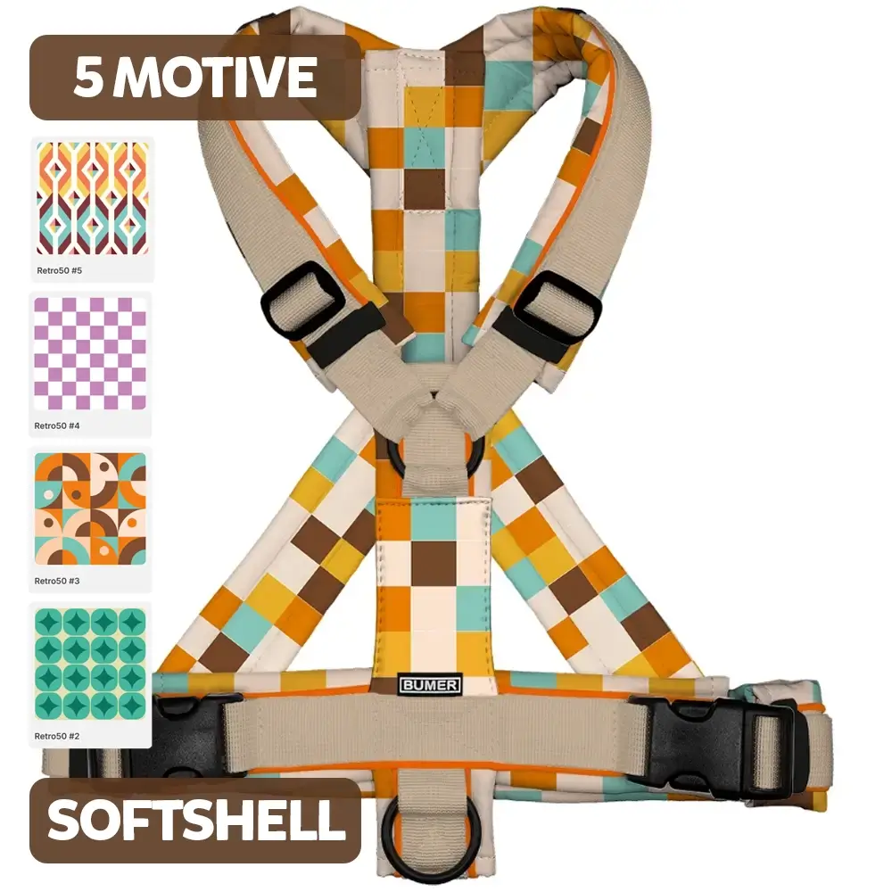 BUMER Hundegeschirr 50er JAHRE MUSTER, gepolstert, (Softshell), komplett konfigurierbar